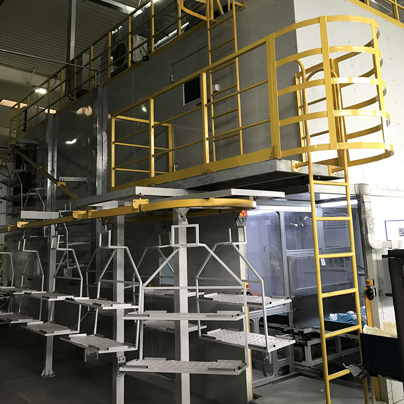Module configuration: Robot glue spraying system, tire mold turntable system, drying room system, surface treatment system, exhaust purification system, conveying system, control system ;